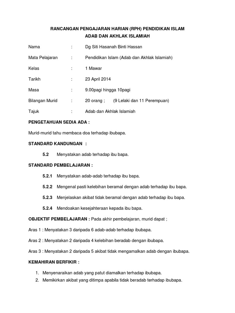 Adab Adab Dalam Islam Tahun 1 Adab Terhadap Ibubapa