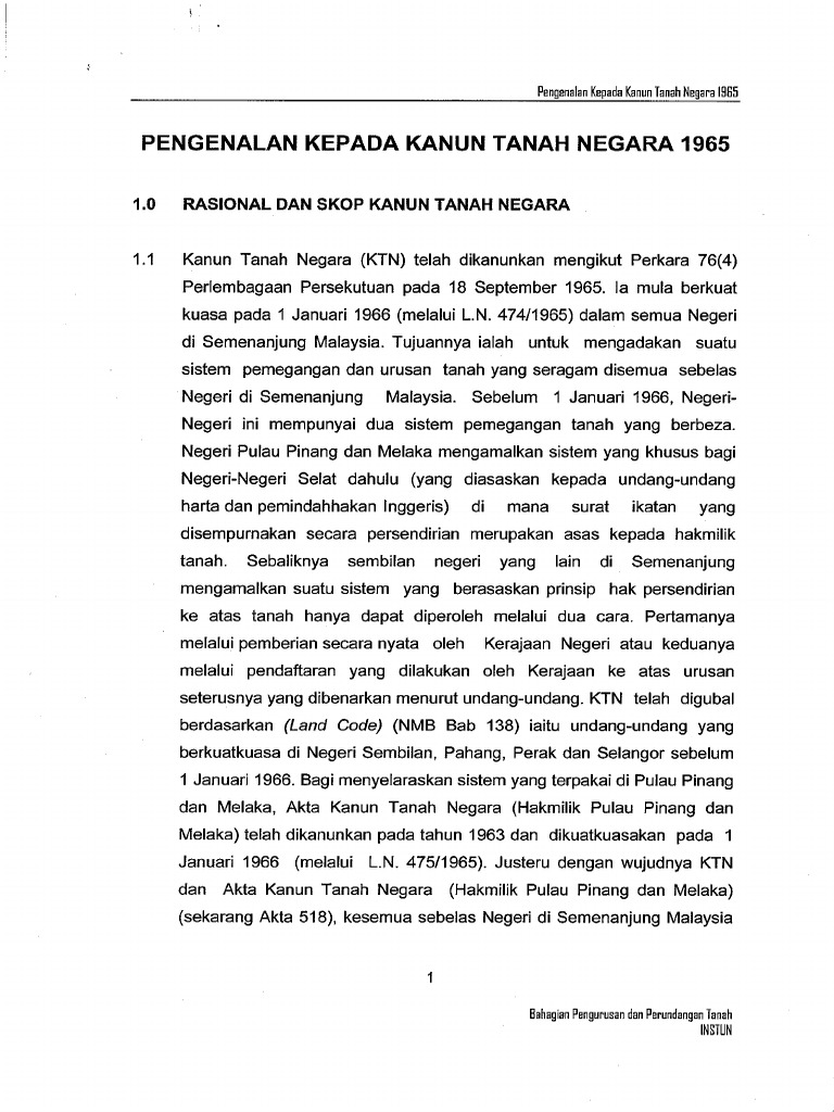 Pengenalan Kpd Kanun Tanah Negara 1965 1 Pdf Document