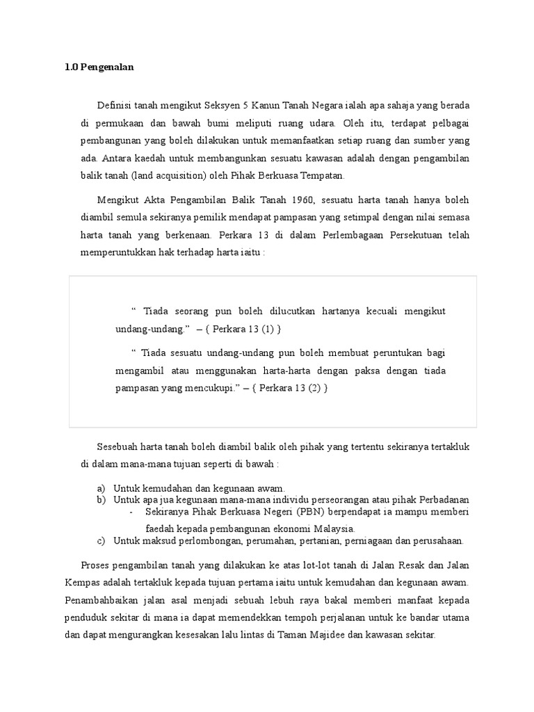 Pengambilan Balik Tanah Intisari Akta Pengambilan Tanah 1960 Sekadar Menyebut Beberapa Contoh Pdf Document