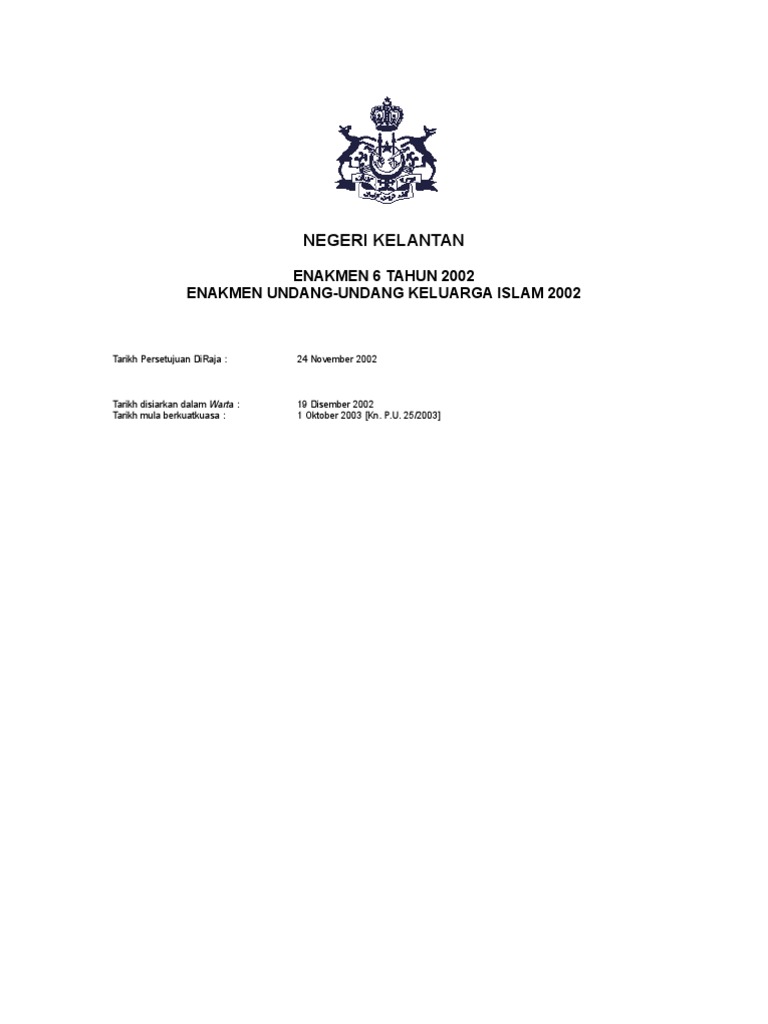 Enakmen Undang Undang Keluarga Islam Kelantan 2002 Doc Document