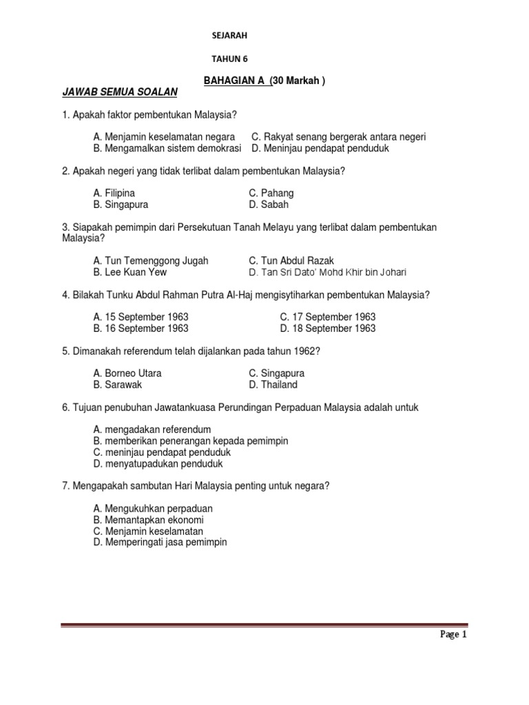 Doc Soalan Pat Sejarah Tahun 6 2016 Docx Mem Mm Academia Edu