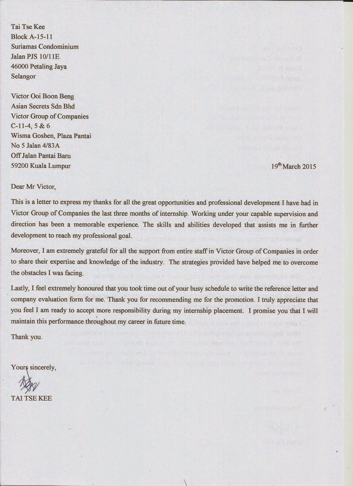 Asian Secret Sdn Bhd Internship
