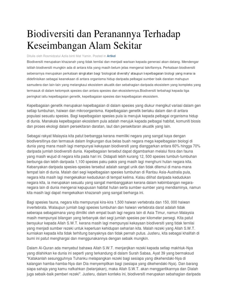 Biodiversiti Dan Peranannya Terhadap Keseimbangan Alam Sekitar