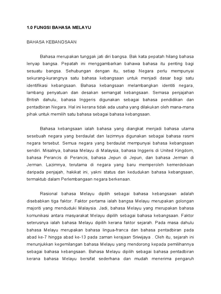Fungsi Bahasa Melayu Sebagai Bahasa Kebangsaan Pdf Document