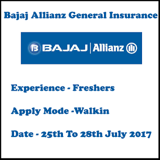 Bajaj Allianz General Insurance Company Ltd Career Notification Walkin Date 25th To 28th July 2017 Today Walkins It Jobs Bank Jobs Govt Jobs Todayjobupdates Com