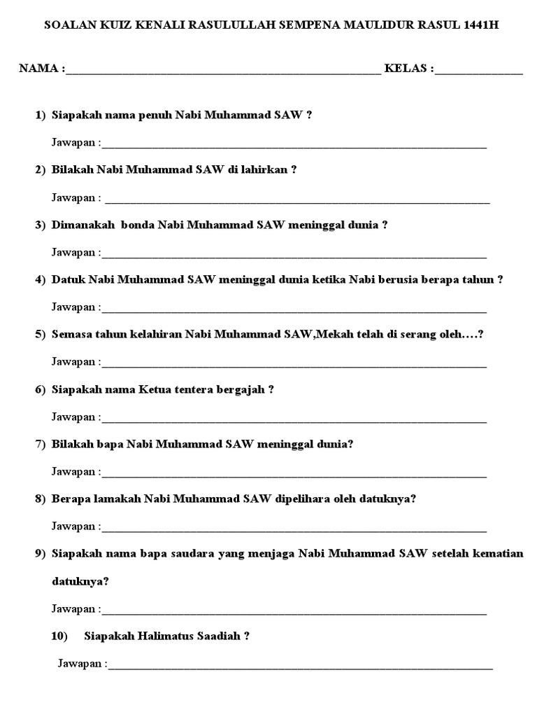 Soalan Kuiz Kenali Rasulullah Sempena Maulidur Rasul