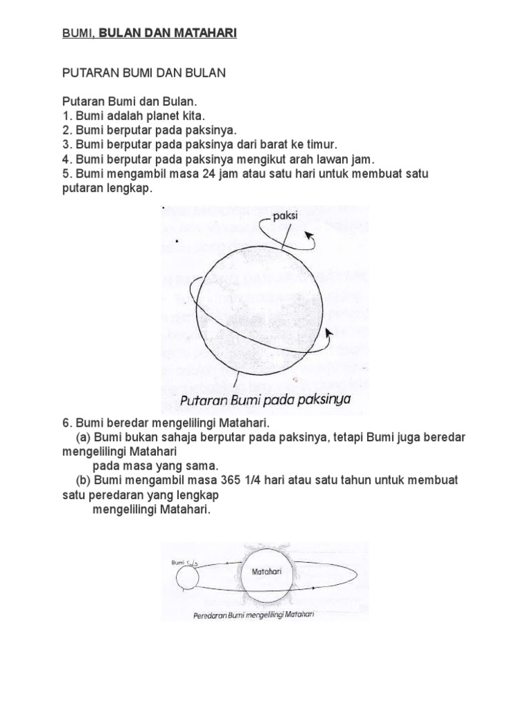 Sains Tahun 5 Pergerakan Bumi Dan Bulan