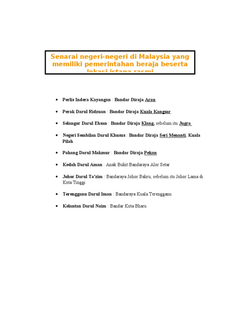 Berapakah Jumlah Negeri Di Malaysia Yang Beraja