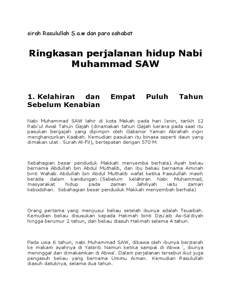 Riwayat Hidup Nabi Muhammad Saw Tingkatan 1 Aimyaimielya Com