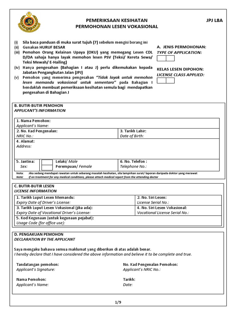 Borang Medical Check Up Untuk Lesen Gdl