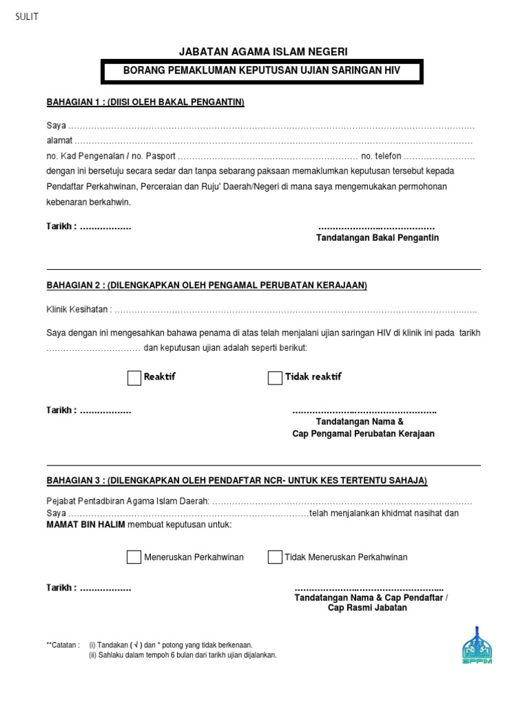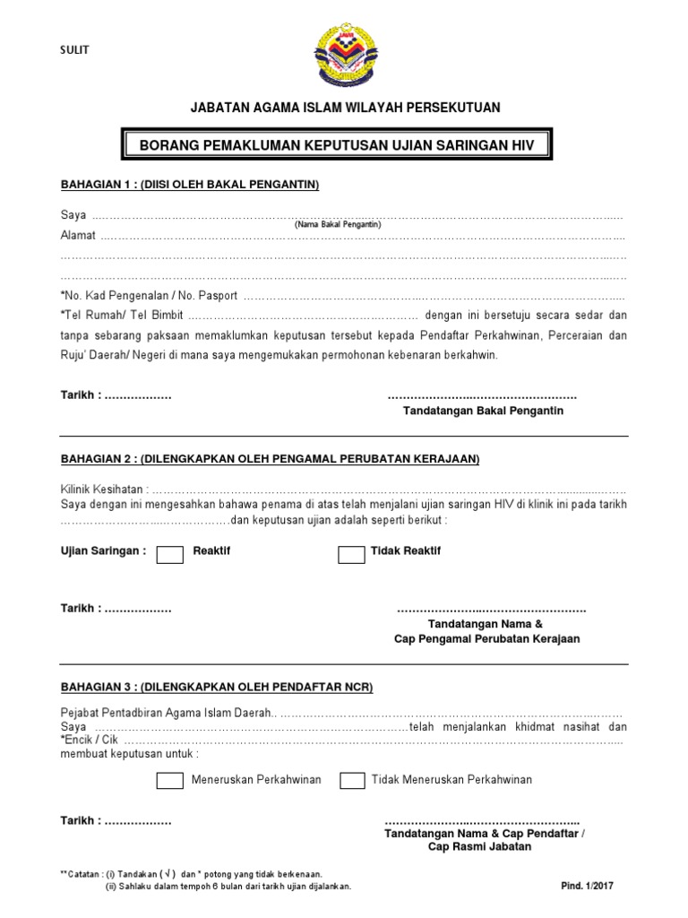 Borang Ujian Saringan Hiv Pra Perkahwinan Pahang