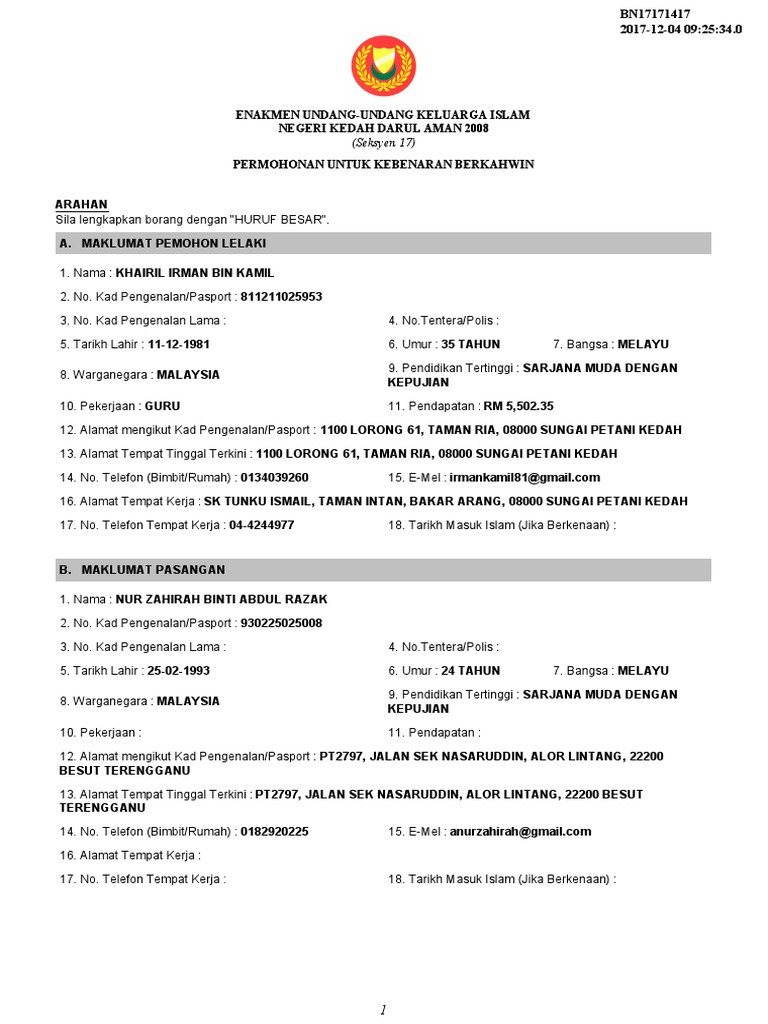 Isi Borang Nikah Online Bakal Pejabat Agama Daerah Kuala Muda Facebook