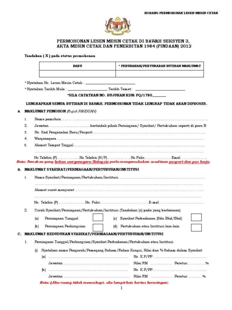 Borang Permohonan Lesen Pihak Berkuasa Tempatan Pbt