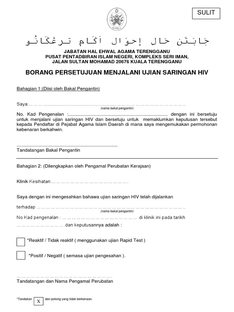 Borang Ujian Saringan Hiv Pra Perkahwinan