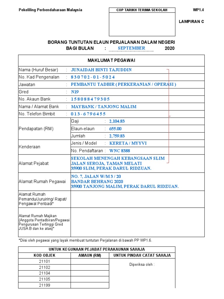 Borang Tuntutan Elaun Perjalanan Dalam Negeri Wp1 4