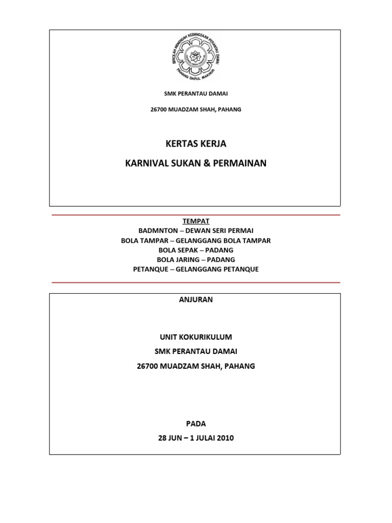 Doc Kertas Kerja Karnival Sukan Permainan Queratul Ain Academia Edu