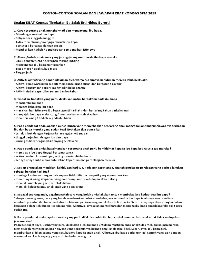 Contoh Kbat Komsas