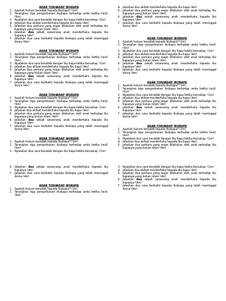 Pendidikan Islam Pelajaran 21 Adab Terhadap Ibu Bapa