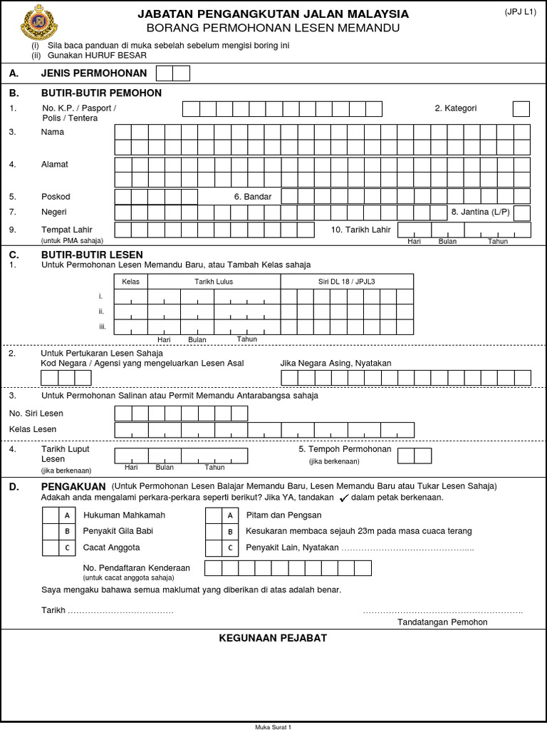 Borang Permohonan Lesen Memandu Jpj L1 Pdf