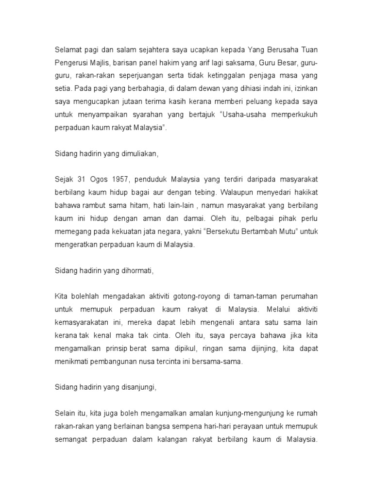 Usaha2 Memperkukuh Perpaduan Kaum Rakyat Malaysia Doc