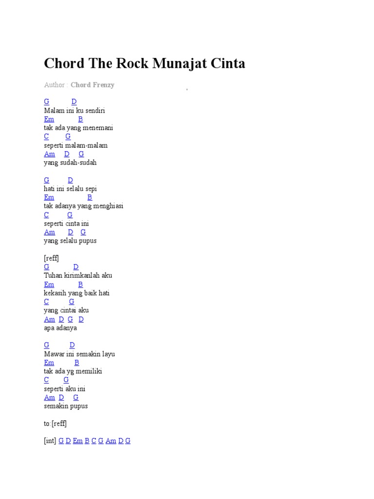 Chord Munajat Cinta Malam Ini Ku Sendiri Tak Ada Yang Menemani Seperti Malammalam Tuhan Kirimkanlah Aku Kekasih Yang Baik Hati Yang Cintai The Rock Lagu Lirik
