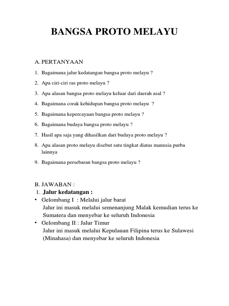 Sebutkan Ciri Ciri Kebudayaan Bangsa Proto Melayu Dan Deutro Melayu Brainly Co Id
