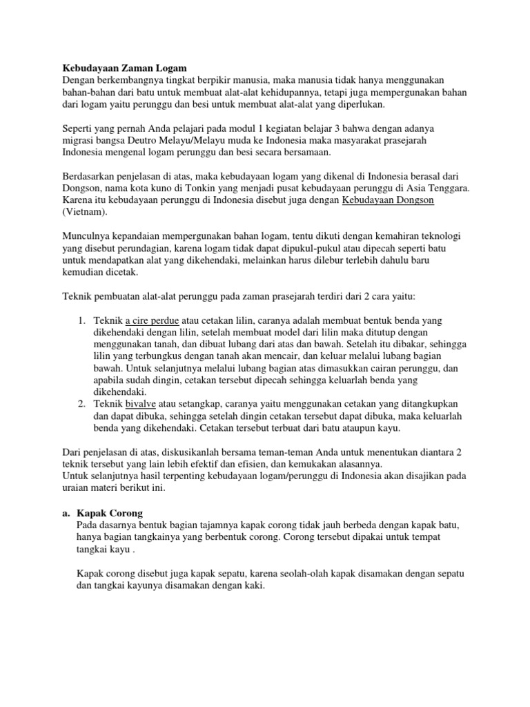 Kehidupan Manusia Purba Pada Masa Perundagian Perpustakaan Ilmu Pengetahuan