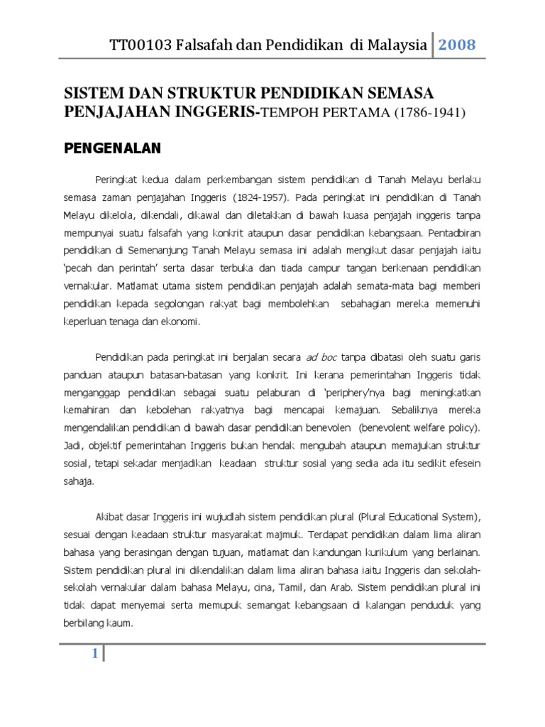 Ciri Ciri Sistem Pendidikan Di Negara Kita Sewaktu Penjajahan British Pdf