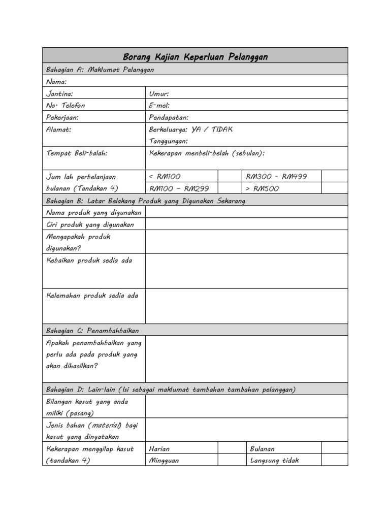 Borang Kajian Keperluan Pelanggan Docx