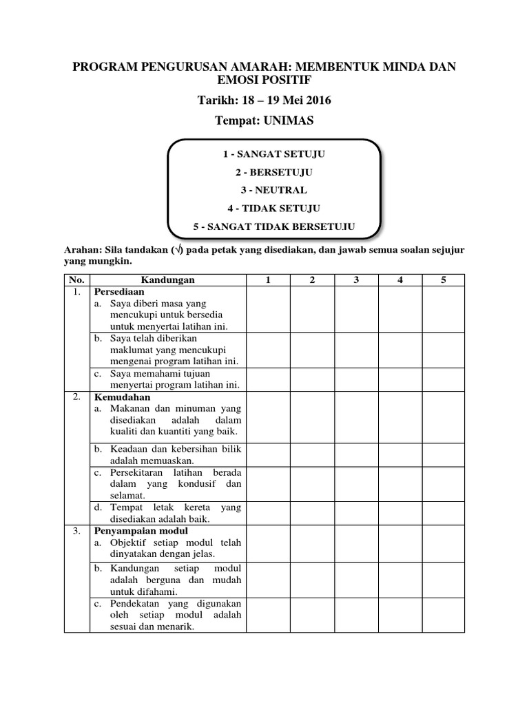 Moshims Contoh Borang Maklum Balas Kehadiran Program