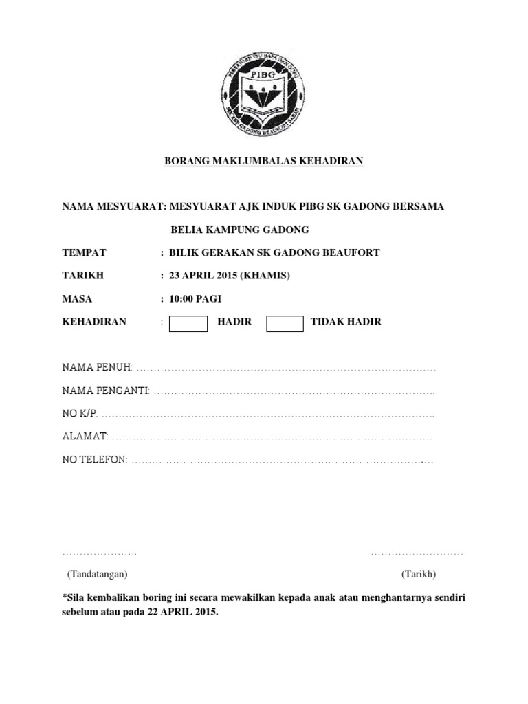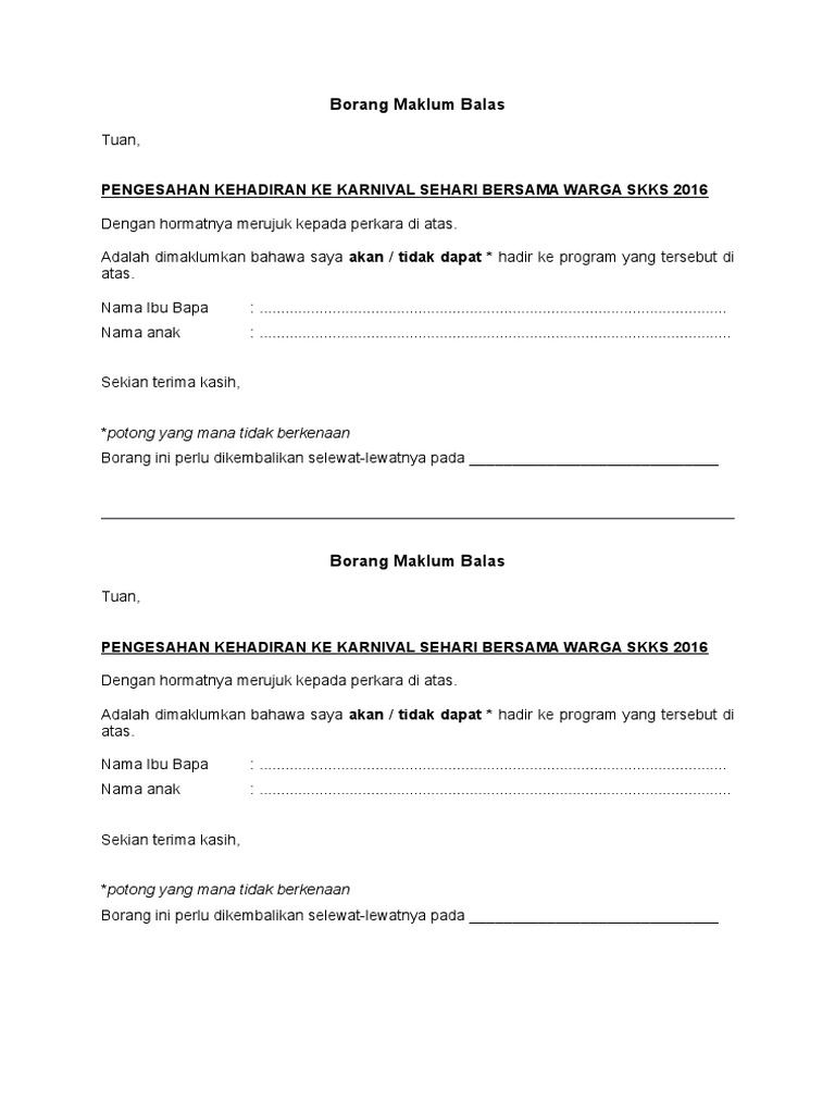 Surat Maklum Balas Kehadiran