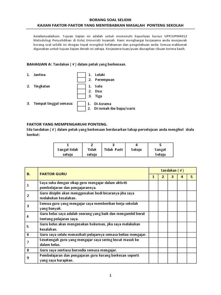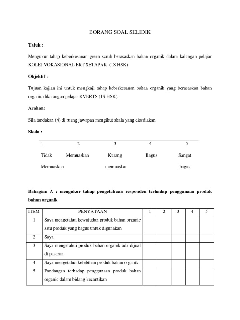Contoh Borang Soal Selidik Tahap Pengetahuan Obtenez Livre Cute766