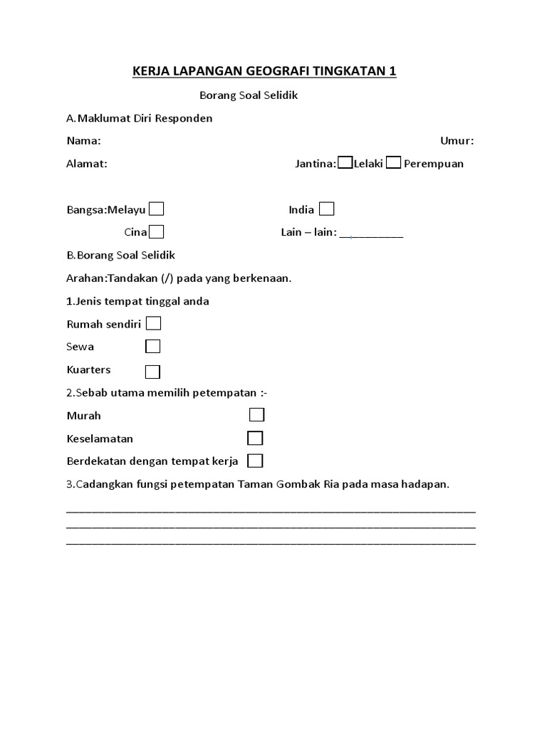 Borang Soal Selidik Geografi Tingkatan 1 Pola Petempatan