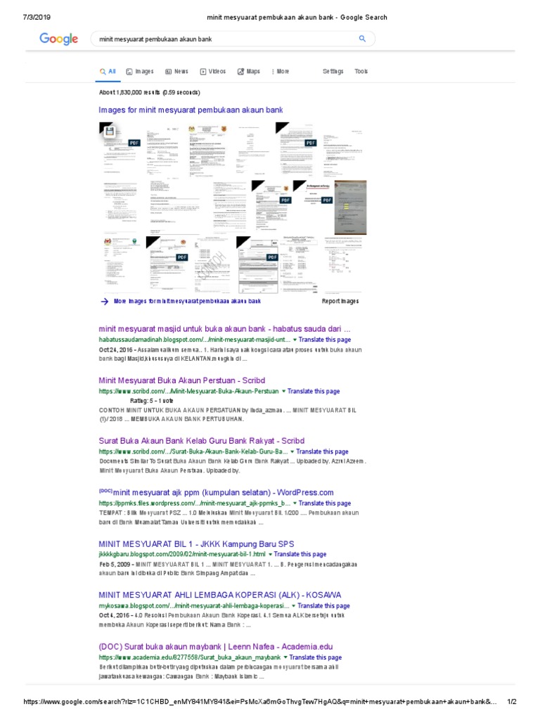 Minit Mesyuarat Pembukaan Akaun Bank Google Search