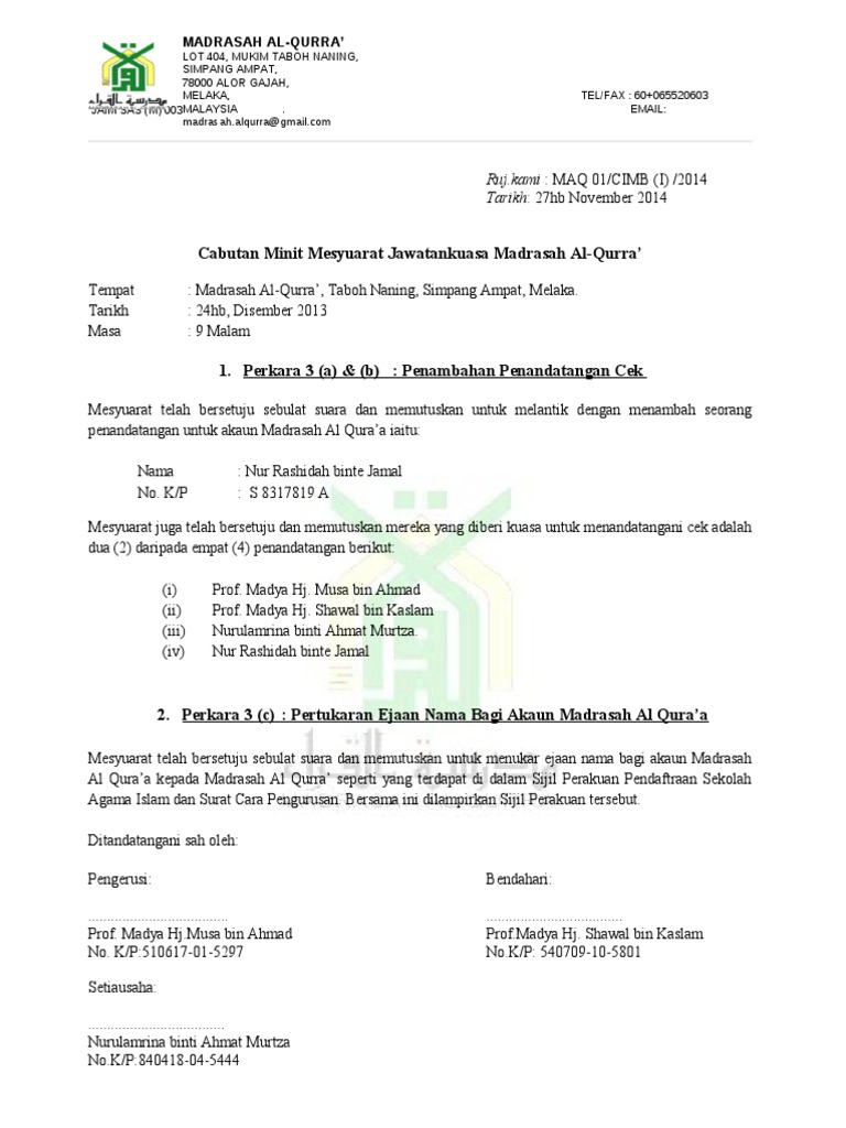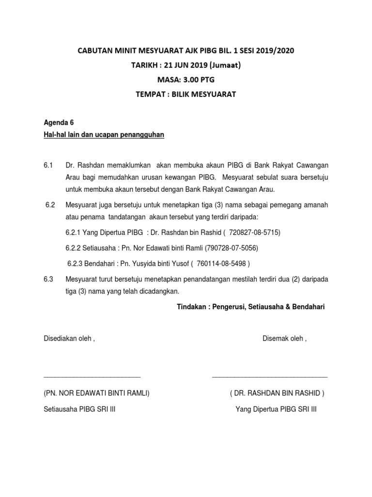 Liaguerhum Contoh Minit Mesyuarat Persatuan Untuk Buka Akaun Bank