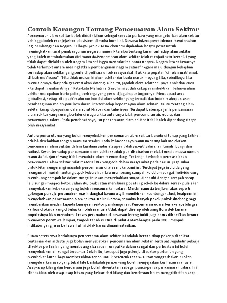 Contoh Karangan Berkaitan Pencemaran Alam Docx Contoh Karangan Berkaitan Pencemaran Alam Contoh Karangan 1 Faktor Pencemaran Alam Sekitar Dan Langkah Course Hero