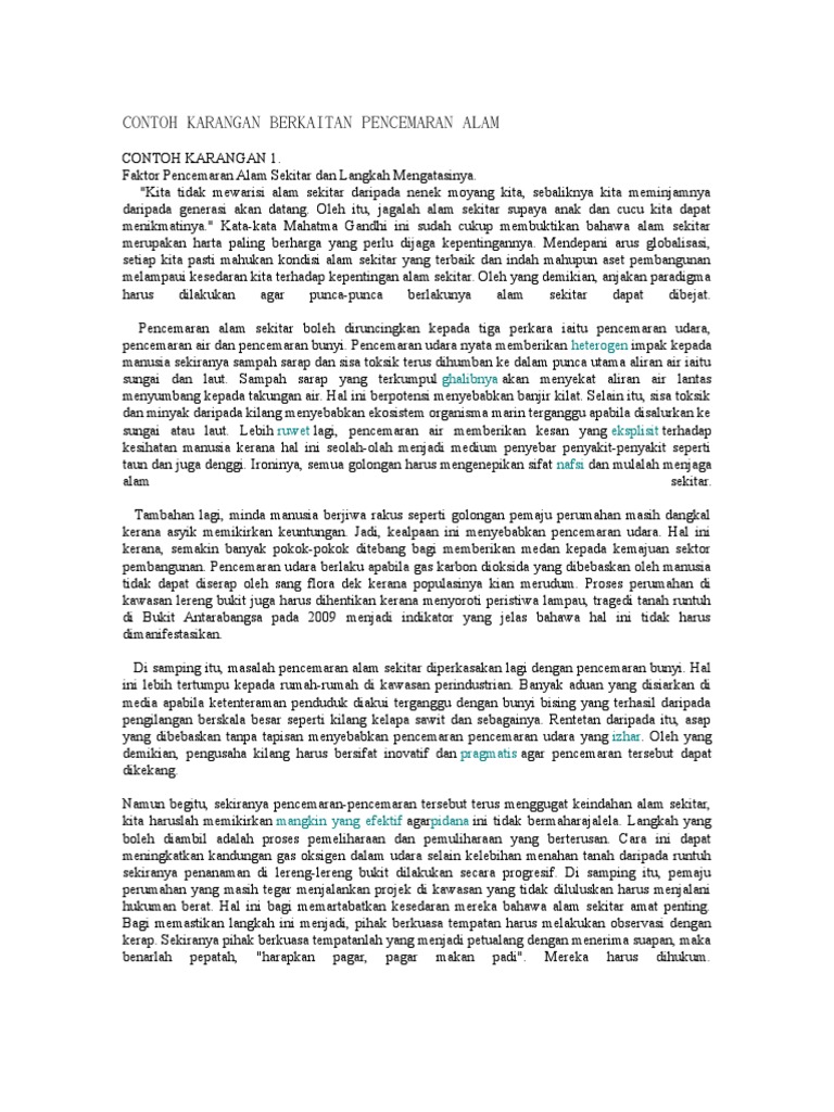 Contoh Karangan Isu Pencemaran Alam Sekitar 8 Contoh Cute766