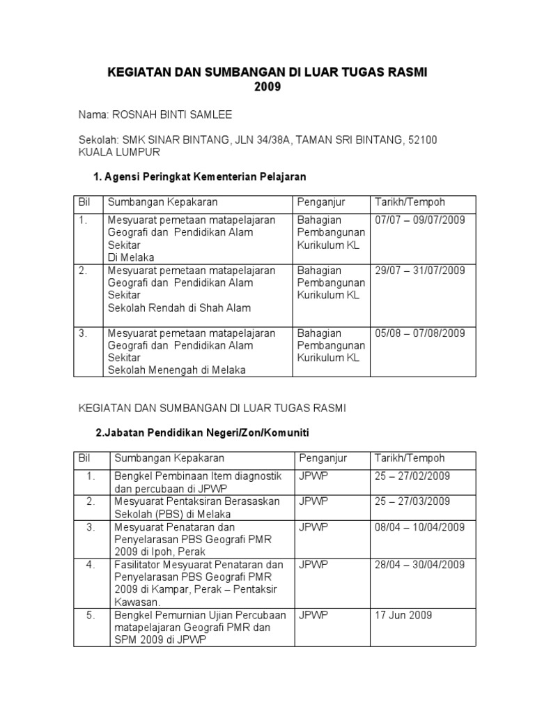 Contoh Kegiatan Dan Sumbangan Di Luar Tugas Rasmi Guru