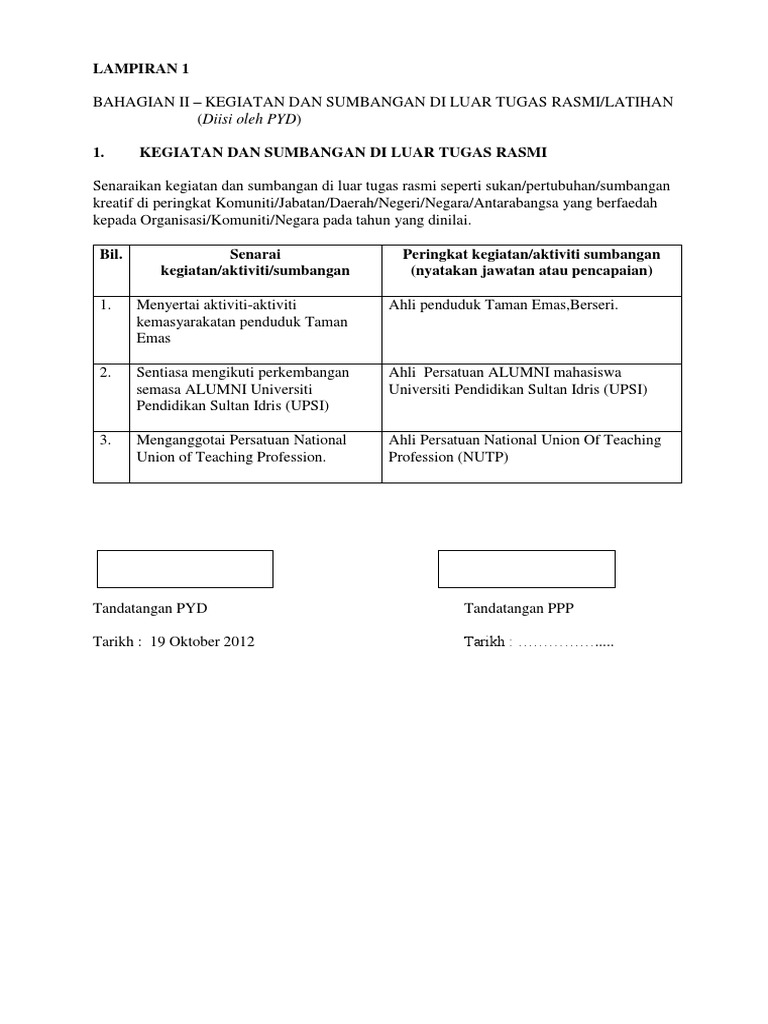 Contoh Lampiran Borang Prestasi Tahunan