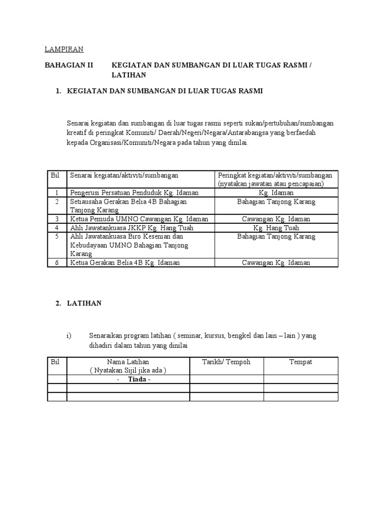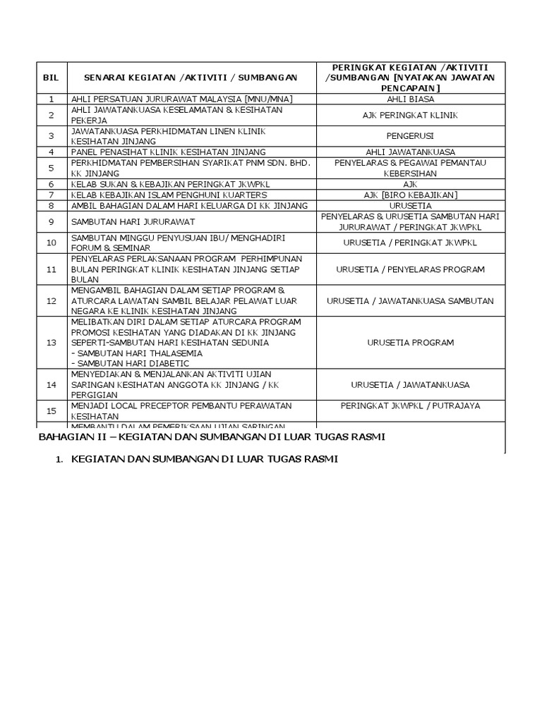 Bahagian Ii Kegiatan Dan Sumbangan Di Luar Tugas Rasmi Latihan Haziq Doc