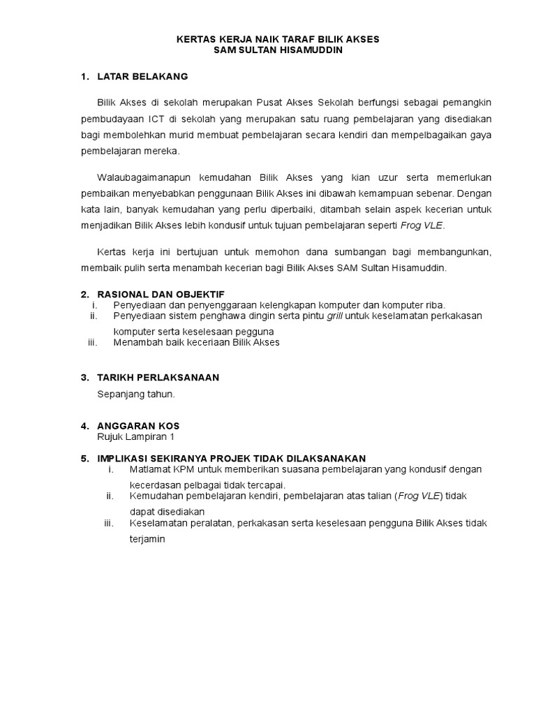 Contoh Kertas Kerja Mohon Sumbangan Komputer