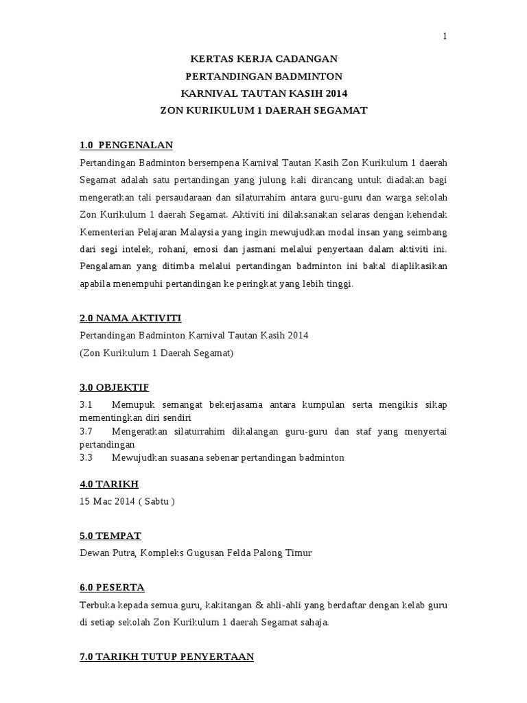 Doc Kertas Kerja Penganjuran Badminton Affan Othman Academia Edu