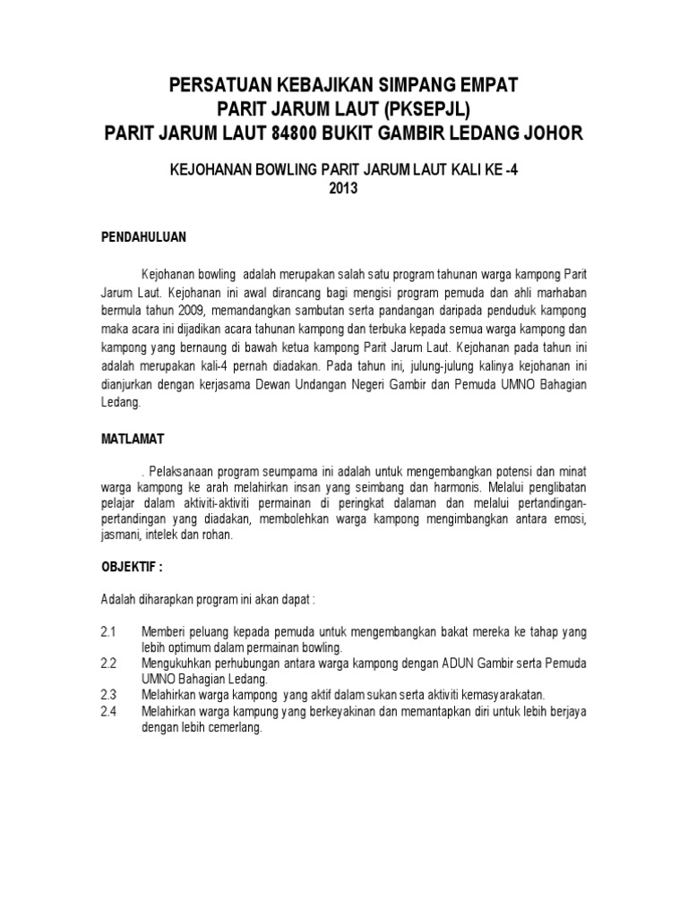 Kertas Kerja Kejohanan Bowling Pjl 2013