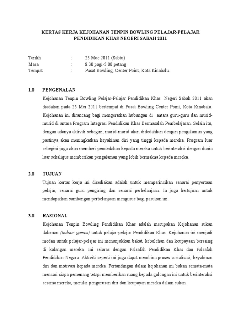 Kertas Kerja Kejohanan Tenpin Bowling Pelajar