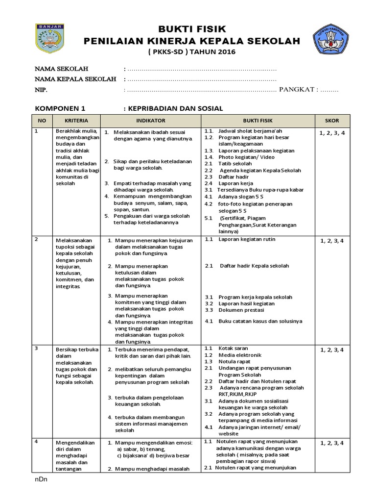 Bukti Fisik Penilaian Kinerja Kepala Sekolah