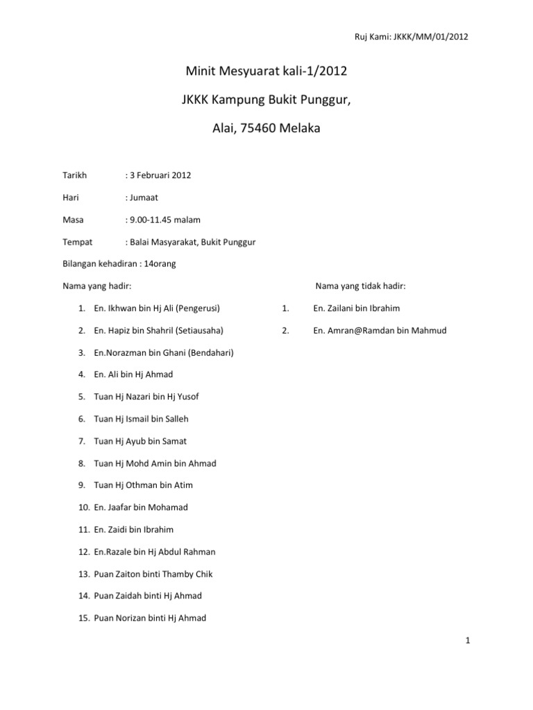 Contoh Minit Mesyuarat Jkkk Kampung Kali Pertama