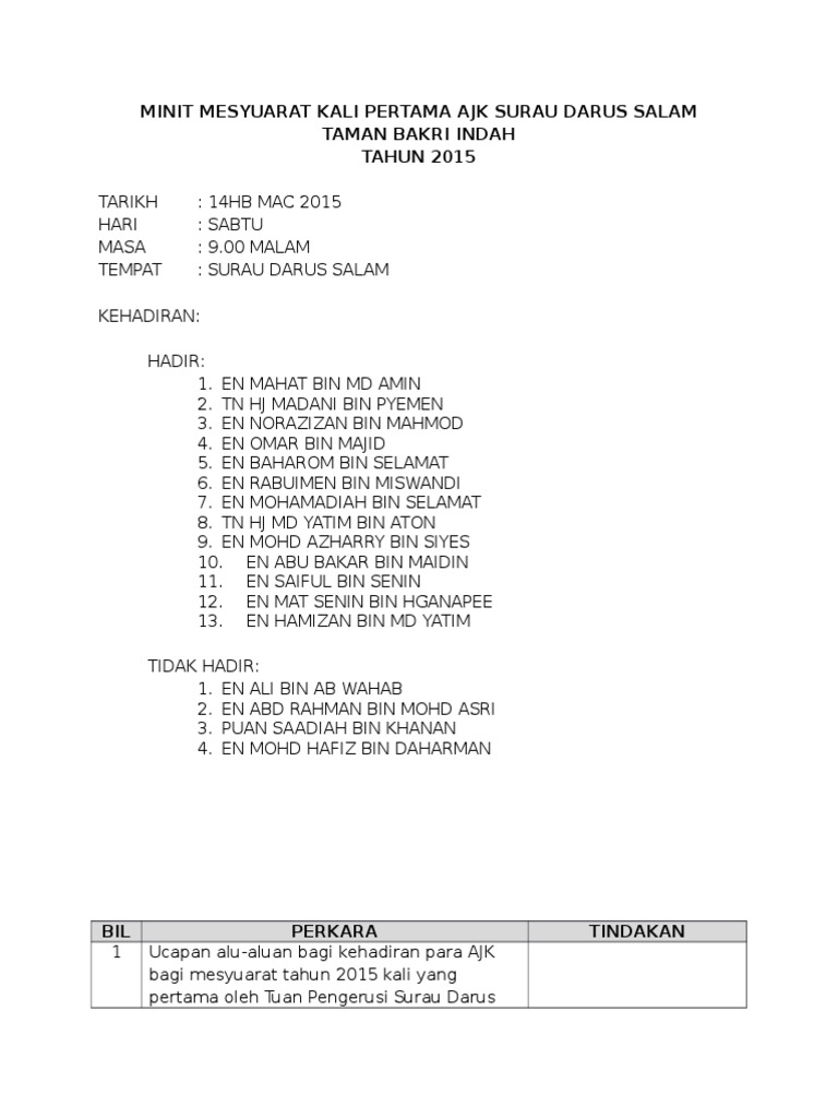 Minit Mesyuarat Surau Bukit Istana Kali Pertama Pages 1 6 Text Version Anyflip