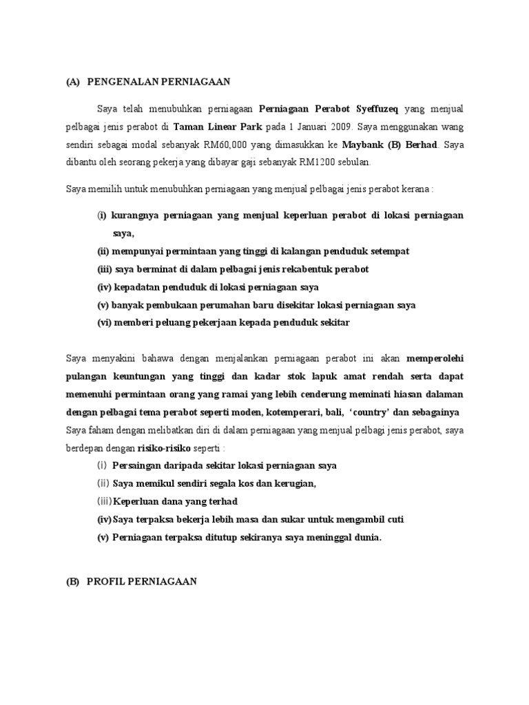 Contoh Susun Atur Rancangan Perniagaan Spm 2020