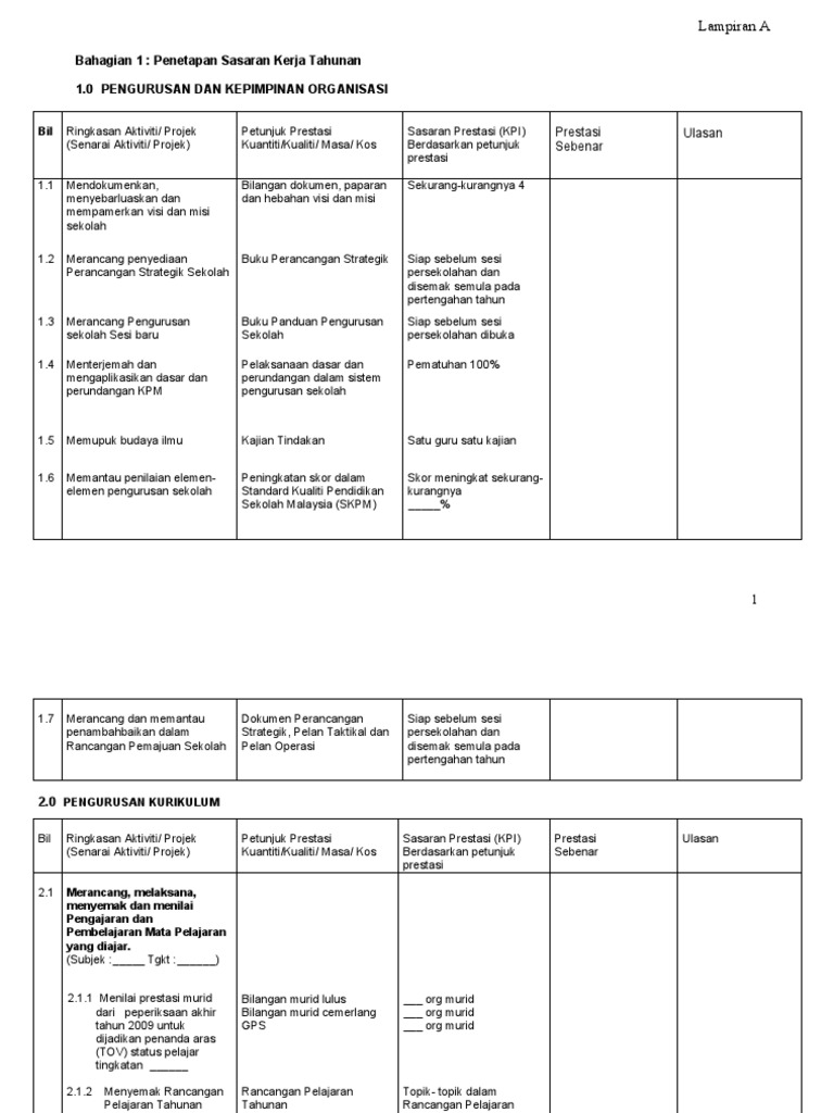 Contoh Sasaran Kerja Tahunan Guru Penolong Kanan Kokurikulum