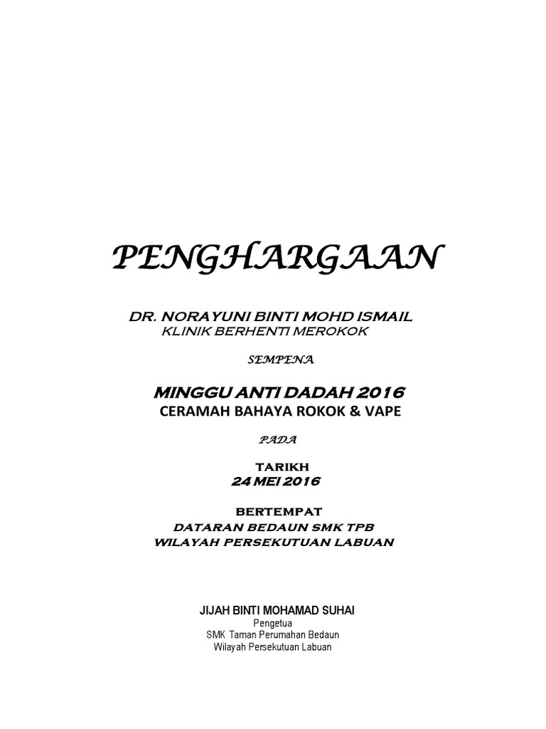 Contoh Sijil Penghargaan Sempena Lawatan Tmp2 Sk Tawakal Satap